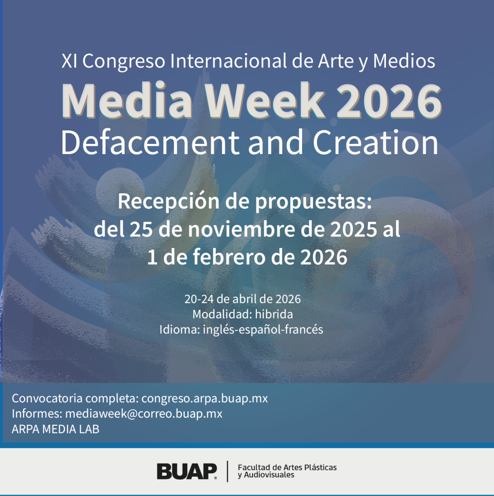 La Media Week de la Facultad de Artes Plásticas y Audiovisuales de la BUAP es un espacio transdisciplinario de diálogo, reflexión y creación sobre el arte y los medios. En cada edición, el evento busca propiciar el encuentro entre investigadores, profesionales, artistas y estudiantes en un entorno internacional mediante conferencias, exposiciones y talleres.